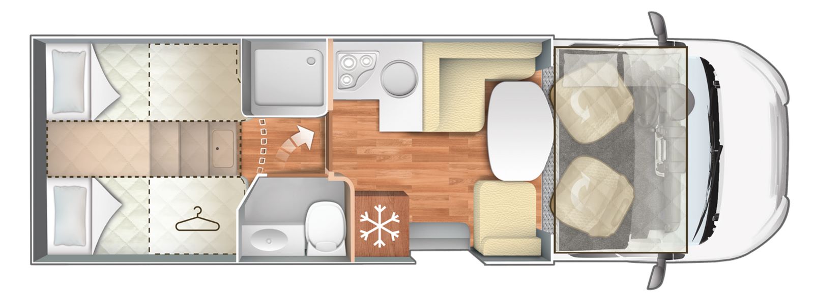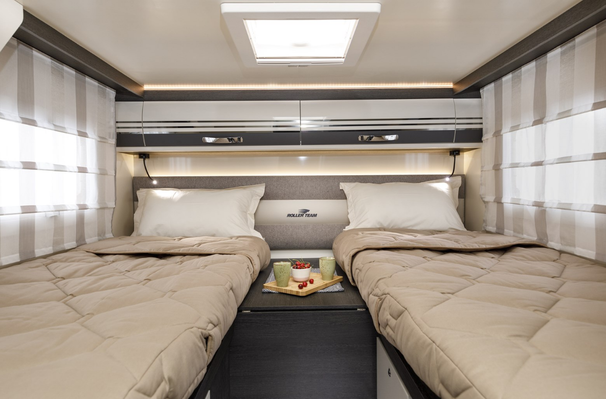 Rückfahrkamera, Klimaanlage, Tempomat, Spurassistent, DAB Radio, Rundum Verdunklung und Insektenschutz2 Einzelbetten im Heck, erweiterbar auf Queensize Doppelbett.